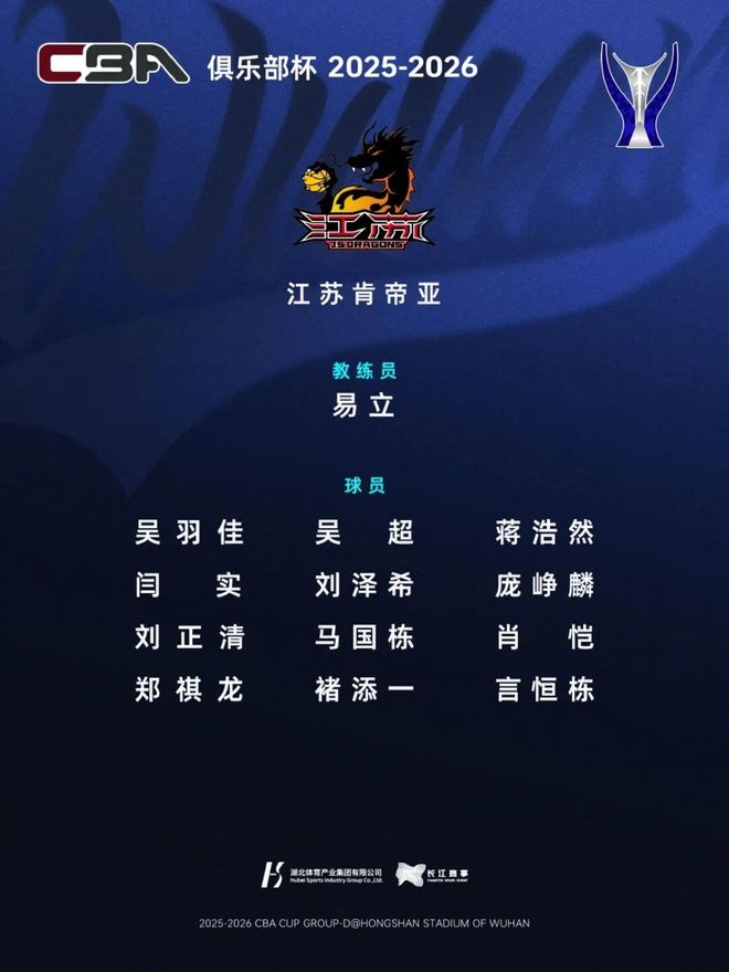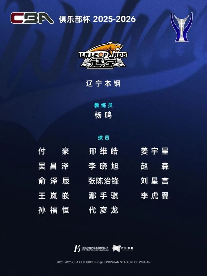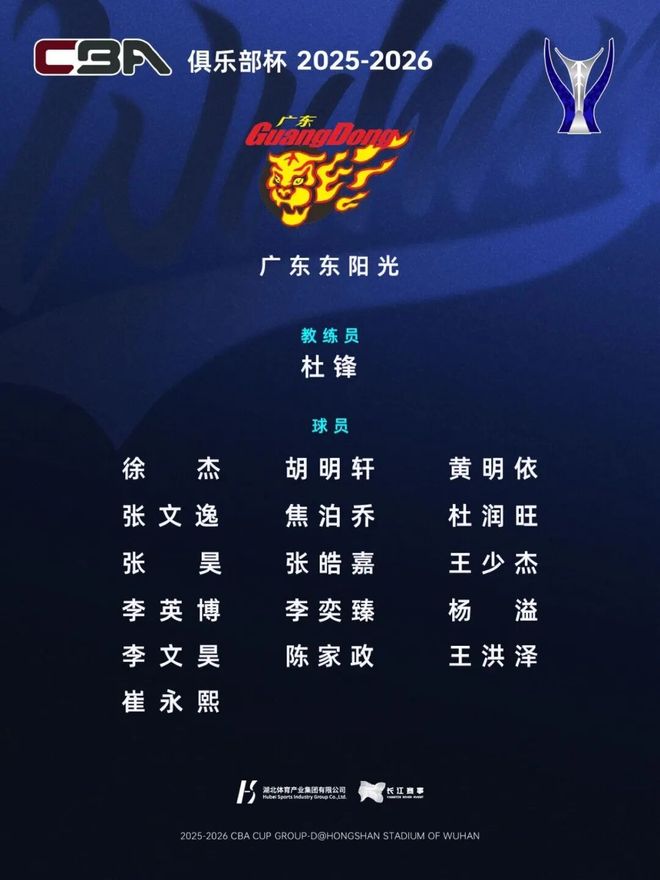 距离 第二届CBA俱乐部杯小组赛开打还有一周, 湖北武汉赛区(D组)名单出炉。 广东、辽宁等队均以全华班出战,升上一队的王洪泽、陈家政在列,崔永熙、焦泊乔也将迎来宏远首秀。