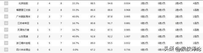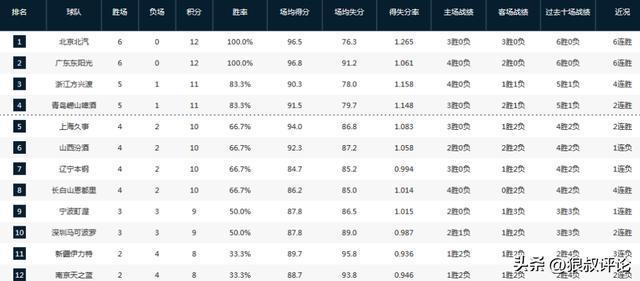 CBA最新排名:京粤6连胜争第1新疆魔鬼主场2连败仅1队0胜6负