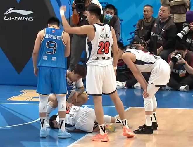 下半场比赛,广东队在进攻端,虽然有一些好转,但是,北京队依旧保持十分高效的得分能力,让两队分差继续扩大,最终,广东队惨负31分,让人大跌眼镜。 然而,更让人感到遗憾的是,广东队不仅是输掉了比赛,在比赛中,后场悍将徐杰,被周琦撞倒受伤离场,让球迷十分担忧。 第二节比赛还有4分钟的时候,周琦倒地直接撞到了徐杰的膝盖,随后,大家也看到了,徐杰躺在地上久久不能够起来,让人看到十分揪心。后来,徐杰被队友背下场。