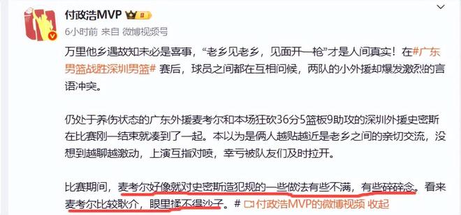 破案了!为何赛后粤深两队小外援吵架打起嘴仗付政浩道出原因