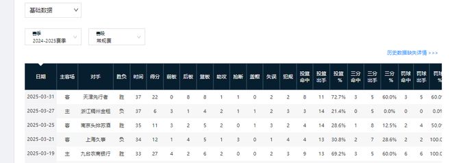在这11场比赛中,张镇麟面对广厦、辽篮等传统强队时,三分球命中率均未超过25%。首战广厦,他三分6中1;第二次对阵广厦,他三分9中2;面对辽篮,他三分4中1。而在面对江苏、宁波、同曦等传统弱队时,张镇麟三分命中率最低也有40%,最高甚至达到75%。这是他关键战波动大的体现。