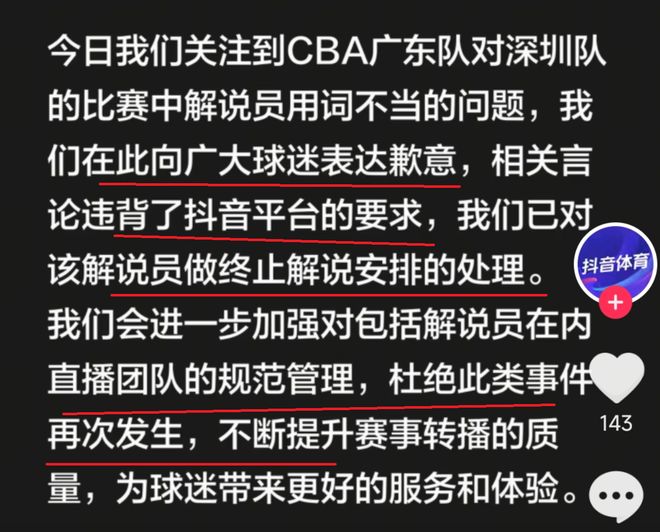 大快人心!CBA解说员内涵广东队球员和球迷抖音终止其解说资格