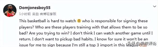 说谁琼斯:这些球员谁签的回CBA前我不想再看这种比赛了