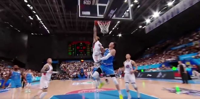 周琦对于这个防守的预判晚了,眼睁睁地目送对方暴扣。
