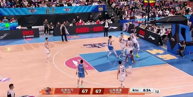 第四节赛场突发火药味!比赛还剩下8分钟34秒,山东外援珀赛尔杀入北京队禁区,一跃而起双脚腾空隔扣了周琦,