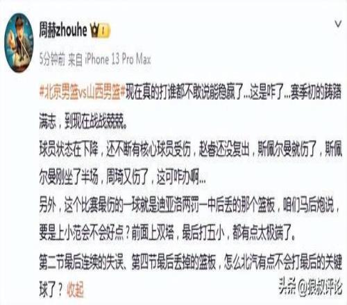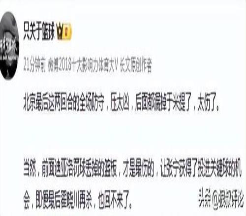篮球记者贾磊发文点评: