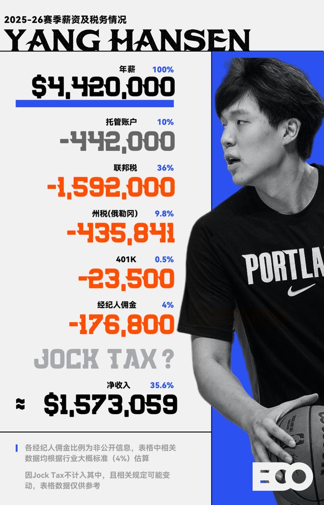 杨瀚森3100万工资到手不足40%NBA合同水分有多大