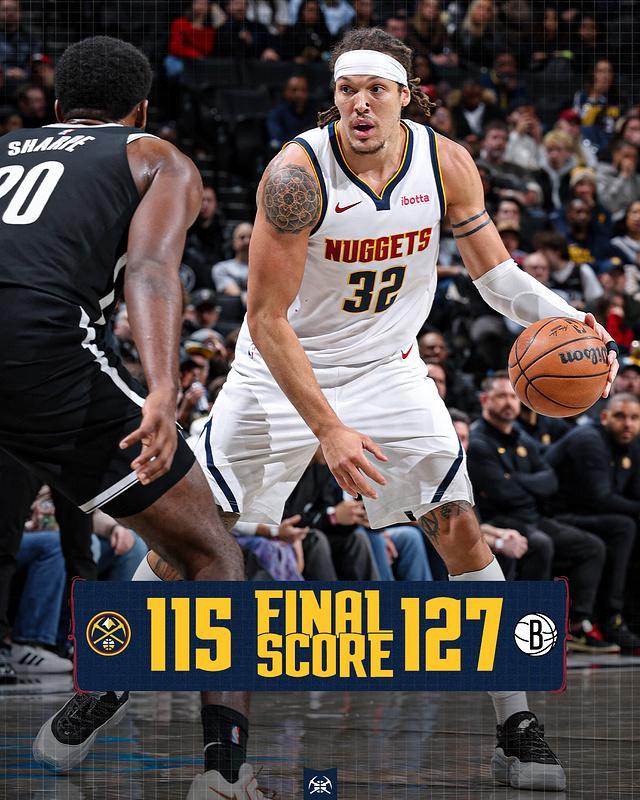 北京时间1月5日,NBA常规赛掘金客场对阵篮网,掘金缺少约基奇等多位主力,戈登、布劳恩与波特迎来复出。穆雷27+16助攻创生涯单场助攻纪录,且生涯助攻升至队史第五位迎来里程碑,引领掘金4人得分20+,依然难阻最多时刻落后22分,最终掘金115-127输给篮网遭遇2连败,篮网结束3连败。