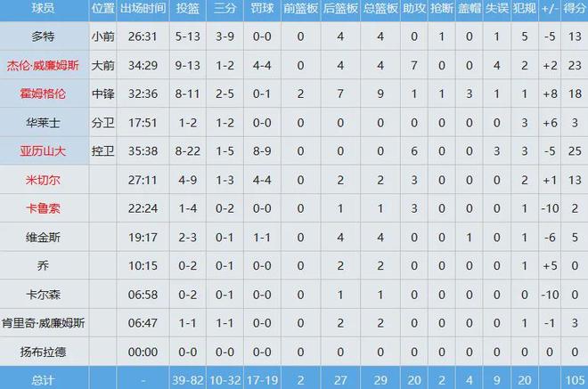 雷霆三分球32中10,命中率只有约31%,投篮向来是他们的最大软肋,数据如下:
