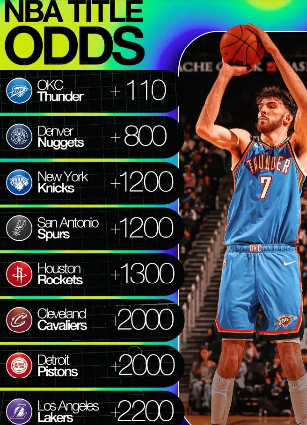 NBA最新夺冠赔率:雷霆遥遥领先,掘金排名第二,尼克斯排名第三