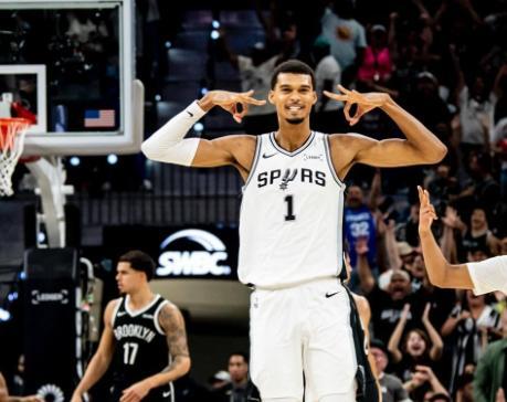 第四名马刺和尼克斯一样,都是+1200,原因也简单,马刺是三杀雷霆的球队,如果季后赛和雷霆相遇,马刺有可能会继续上演各种吊打,因为有文班亚马存在,马刺就有所有可能!