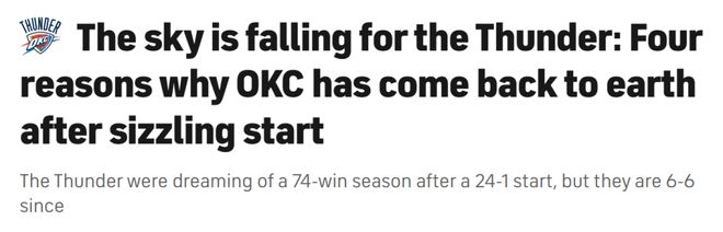 北京时间1月7日,雷霆队曾以24胜1负的梦幻开局,憧憬着冲击昔日勇士73胜的赛季神迹,然而此后他们却仅取得6胜6负的战绩,光环褪去,回归凡尘。