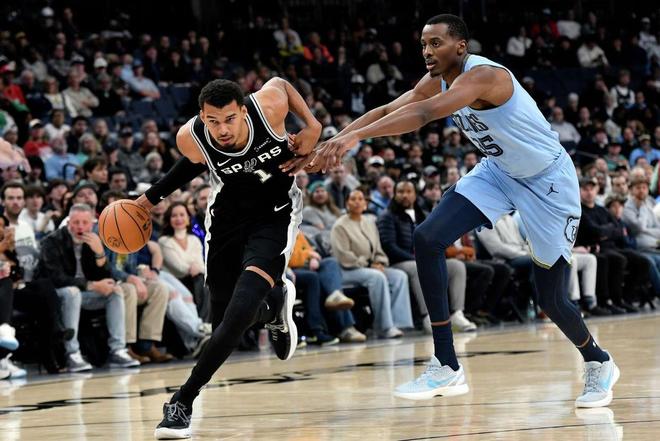 北京时间1月7日,NBA常规赛继续火热进行。马刺奔赴客场与灰熊展开对决,该场比赛,是双方本赛季的第三次交手。前两战都取得了胜利的圣安东尼奥,在此役还迎来了文班亚马的伤愈复出。米奇约翰逊的首发五虎是卡斯尔、福克斯、尚帕尼、科内特与巴恩斯,文班亚马、哈珀继续出任替补,瓦塞尔伤停。孟菲斯的首发五人是小贾伦杰克逊、兰代尔、斯潘塞、韦尔斯与GG杰克逊。贾莫兰特、科沃德、扎克埃迪、小皮蓬、杰罗姆、克拉克、康查尔7人伤停。4连败的孟菲斯,期待触底反弹。尽管人员不整,灰熊众将依旧展现了顽强的斗志。 大爆冷门!文班亚马30+5,马刺惨遭逆转!福克斯18中4,火箭旧将暴走! 全场比赛回顾 首节开打,尚帕尼率先在进攻端发难,马刺连中远投很快反客为主取得比分领先。兰代尔率领灰熊追分,不过,卡斯尔携手文班亚马在禁区发力,帮助圣安东尼奥取得两位数领先。首节打完,马刺队以31比21领先,尚帕尼单节15分4篮板。 波普防守尚帕尼