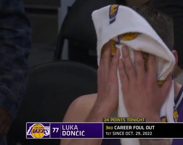 在第四节最后时刻,东契奇在防守雄鹿后卫小凯文-波特时尽管已经非常小心但仍被吹罚三分犯规,但此时湖人也没有挑战机会因此东契奇也被吹了第六次犯规不得不离场。下场后东契奇感到非常不满,他回到替补席后怒摔毛巾。 据统计,这是东契奇职业生涯的第三次犯满离场。 |