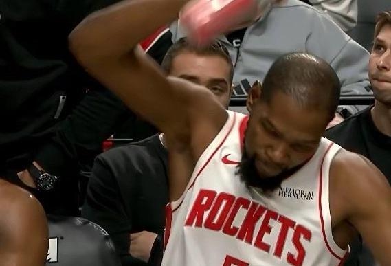 杜兰特被气到砸水瓶!罕见暴怒的背后是火箭跌出争冠行列!