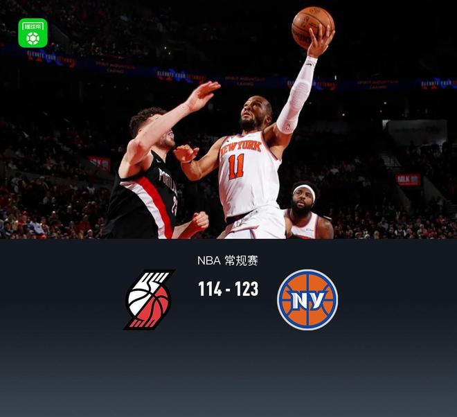 第四节,开节开拓者延续势头一波10-2直接反超3分,随后双方再度陷入拉锯战,持续上罚球线得分,来到后半节尼克斯阿奴诺比、麦克布莱德一波三分雨领先至两位数,随后开拓者阿夫迪亚伤退,夏普三分追至5分,随后尼克斯哈特、阿奴诺比相继冲框得分锁定胜局,最终开拓者114-123不敌尼克斯。