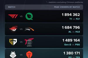 体育资讯10月16日讯 昨日瑞士轮首轮的比赛已经全部结束了,而今日凌晨外媒数据平台公布了昨日海外收视率前四的统计:其中T1以将近190万的收视人数遥遥领先。 |