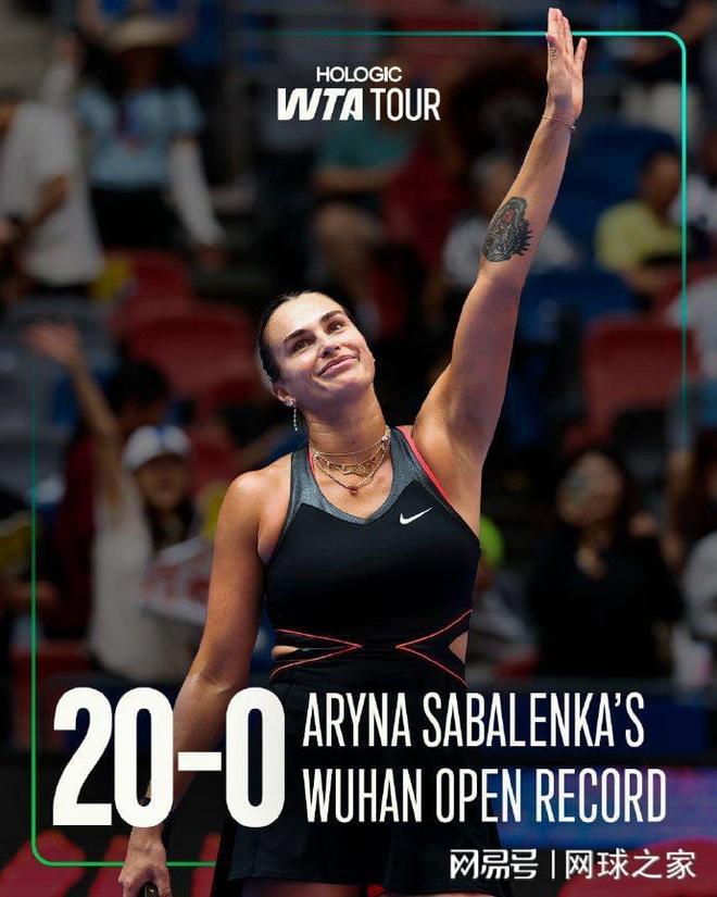 我们再来关注女子赛场。北京时间昨晚,WTA1000武汉网球公开赛单打1/4决赛战罢,四强席位各有归属。三届赛会冠军、头号种子萨巴伦卡以6-3 6-3完胜8号种子、哈萨克斯坦名将莱巴金娜,在武网豪取20战全胜,强势晋级四强。自1990年以来,萨巴伦卡是继塞莱斯、格拉芙、沃兹尼亚奇之后,第四位在单项WTA级别赛事的前20场比赛中全都获胜的球员,刷新了自己的纪录。