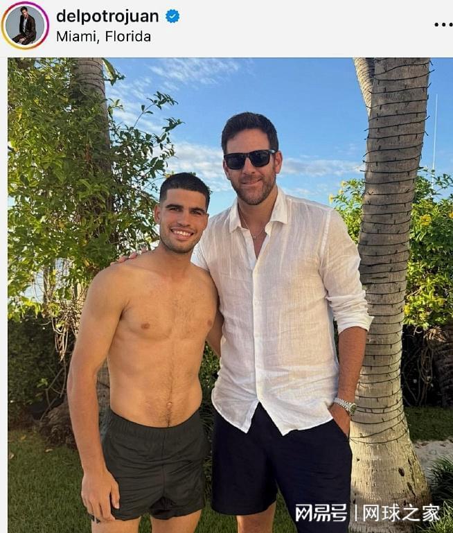 我们再来关注另一位西班牙网球明星、世界第一阿尔卡拉斯。在因伤退出戴维斯杯决赛圈的比赛之后,阿卡前往美国迈阿密度假。没成想,巧遇同样来此度假的阿根廷大师兄德尔波特罗。两人在海边合影留念并畅叙网坛往事,大师兄还在个人社交媒体晒出了两人的合影。