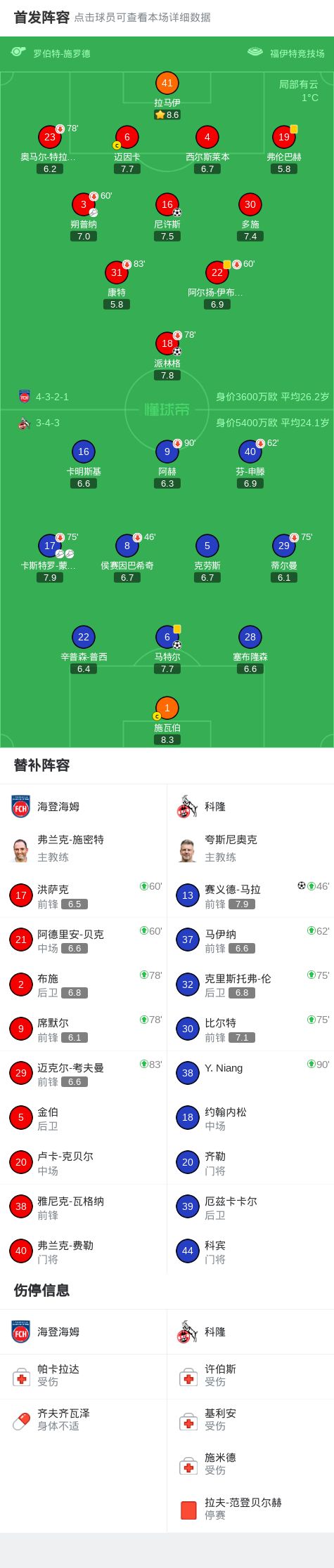 海登海姆22科隆,派林格首开记录,赛义德马拉扳平比分