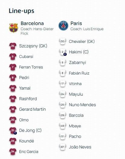 巴萨vs巴黎:佩德里PK维蒂尼亚亚马尔、拉什福德出战