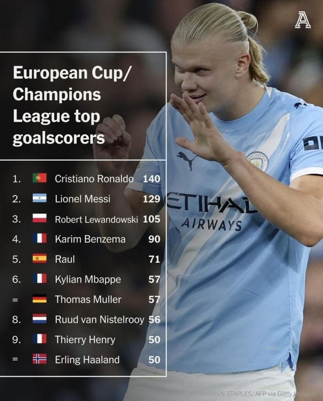 欧冠看两件事:谁进得多,谁进得快。哈兰德用49场攒到50球,爆发力拉满;C罗以140球领跑历史总射手榜,靠的是多年稳定与淘汰赛深挖。一快一久,像两把尺子量射手的不同能力:前者看瞬时杀伤,后者看职业厚度。顺着这两张榜单,就能看清不同类型前锋的成名路径与上限。(数据截至北京时间2025年9月19日)