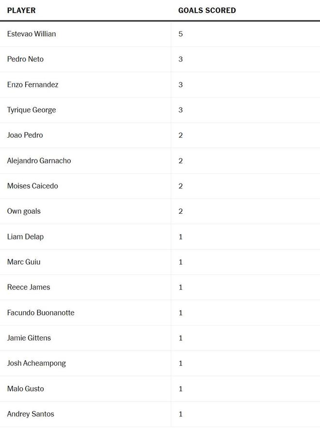 真正引人注目的是他们打入30球的进攻火力。 帕尔默在他迄今为止在斯坦福桥完成的两个赛季中都是切尔西的头号射手,2023-24赛季打进25球,2024-25赛季打进18球。马雷斯卡会很高兴地看到,利亚姆-德拉普对阵巴塞罗那打入第三球的利落破门,确保在帕尔默缺席的过去两个月中,已有16名不同的球员(包括乌龙球)取得过进球。他们列在下方。