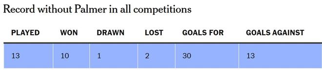 让我们把时间拨回去年四月,切尔西即将对阵阿森纳的备战期。当时毛里西奥-波切蒂诺还是切尔西的主教练,球队面临在没有他们的核心球员帕尔默(因病缺席)的情况下迎战伦敦对手的前景。 “这对队友们来说是一个很好的挑战,”波切蒂诺说。“如果我是科尔-帕尔默的队友,踢和他相同或类似的位置,我会很有动力去那里,并展示这是切尔西足球俱乐部,而不是科尔-帕尔默足球俱乐部。” 波切蒂诺激励团队的尝试并未奏效。切尔西在酋长球场0-5惨败,而他们依然在很大程度上被称为“科尔-帕尔默FC”。 尽管今年早些时候,他在波切蒂诺的继任者恩佐-马雷斯卡手下经历了一段状态低迷期,但这个标签在上赛季也几乎一直跟随着球队。帕尔默是那个提供灵感,帮助切尔西赢得欧协联决赛和世俱杯决赛的人。 但随着周日又将迎来一场对阵阿森纳的比赛,切尔西现在比19个月前更有信心能在没有帕尔默的情况下获胜。 几周以来,他们已经向自己证明了这一点。周二他们3-0战胜巴塞罗那的欧冠胜利,只是为他们一直以来的表现画上了一个惊叹号。 马雷斯卡的球队在没有帕尔默的情况下已经踢了13场比赛,这主要是因为他腹股沟受伤。由于左脚小趾骨折,他上周就已确定无法在对阵巴塞罗那的比赛中复出。 如果在赛季开始前——更不用说告诉马雷斯卡了——有人告诉切尔西球迷帕尔默将连续缺席这么多场比赛,他们的反应恐怕会比“真够倒霉的”强烈得多。 但是,请看下面这张简单的表格,它列出了自九月份对阵曼联被迫被换下以来,球队在没有他时的各项赛事战绩记录。这读起来相当令人印象深刻。两场失利中的那一场(对阵布莱顿)需要说明的是,切尔西在1-0领先时被罚下一人。