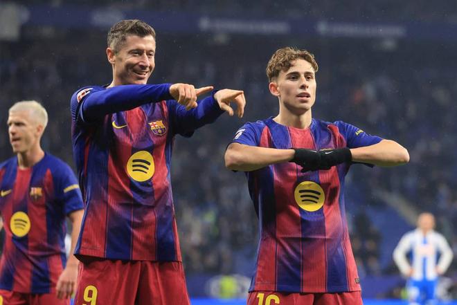 3分钟后,费尔明再次策动进攻,他在禁区送出“倒三角”传球,帮助莱万破门得分,巴萨也将比分最终定格在了2比0。 凭借这个进球,莱万已为巴萨攻入109球,巴萨生涯进球数量超越萨尔杜亚、路易斯·恩里克(108球)。 值得一提的是,除了奥尔莫和莱万的进球,霍安·加西亚的多次扑救也是球队赢球的关键。根据统计,加西亚全场贡献6次扑救,他是自2023年11月特尔施特根对阵皇家社会之后,首位西甲单场6次扑救+零封的巴萨门将。赛后,他也被评为本场最佳球员。霍安·加西亚今夏以2634.15万欧加盟巴萨。因不满他加盟同城死敌,西班牙人球迷赛前就不断辱骂霍安。比赛中,霍安也是多次遭到西班牙人球迷嘘声。 此外,数据统计显示,自从2025年11月26日欧冠联赛阶段客场0比3不敌切尔西以来,巴萨已经取得各项赛事八连胜。另一项数据显示,在最近50场联赛与西班牙人的比赛中,巴萨只输了3场,同期皇马对阵西班牙人输了7场,马竞则输了16场。 “我们用一场胜利庆祝新年,非常开心,我们知道对手会给我们制造困难,会施加压力,他们踢得很出色,但我们也表现得很好,现在我们的目标是西班牙超级杯。”进球功臣奥尔莫在赛后接受采访时表示,“加西亚的表现太棒了,是个顶级门将,面对老东家他踢得非常出色,还保持了零封。他会给我们带来很多帮助,现在已经开始展现出来了。”