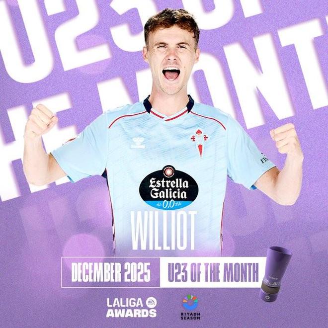 3场3球,塞尔塔前锋斯韦德贝里当选西甲12月最佳U23球员