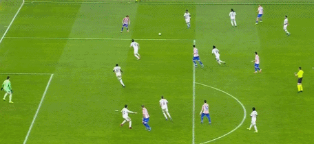 下半场刚开始,西蒙尼立刻调整,换上勒诺尔芒加强防守与出球。但第55分钟,皇马一击致命。巴尔韦德右路送出精准直塞,罗德里戈从中路启动,强行甩开两名防守球员,形成单刀。面对奥布拉克,巴西人冷静推射远角得手,皇马将比分扩大到了2-0。
