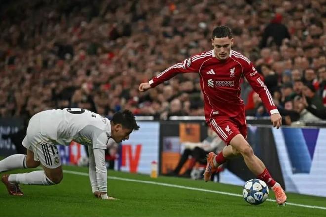当然,本场比赛能够有如此表现,维尔茨要感谢主帅斯洛特。因为在左边锋位置上,维尔茨可以有效规避身体对抗,这有利于他技术优势的发挥。此外,斯洛特也赋予了他足够的自由度,让德国中场在比赛中成为了一个自由人。他不仅在左路兴风作浪,还经常拉到右路与萨拉赫配合。此役埃及法老10次突破5次成功,也跟维尔茨的支援有分不开的关系。 另外一个不得不提的点,就是皇马球员的贴身逼抢和身体对抗强度一般,让维尔茨可以轻松应付。第10分钟那次抢断传球,皇马身高1米97的中卫赫伊森竟然被外号“土豆”的维尔茨直接扛开。没有了身体对抗上的短板,德国中场的技术优势自然得到了尽情发挥。 从这个意义上来讲,维尔茨如果在今年夏天加盟皇马,或许是一个更好的选择。虽然他在英超赛场上屡屡吃亏,但应对西甲的比赛强度还是不成问题。不过,假如毕竟是假如,维尔茨现在面临的问题,还是如何提高身体对抗能力立足英超,不让红军在他身上投入的上亿欧元打水漂。