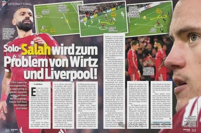 1、德国媒体《体育图片报》用了两个整版打通,指责“独奏者”萨拉赫是维尔茨和利物浦本赛季表现不佳的“罪魁祸首”。