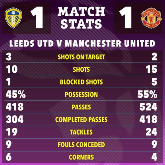 比赛最后时刻,库尼亚的一次远射击中门柱外侧。利兹联也有一两次威胁进攻被曼联门将拉门斯化解,双方最终1-1握手言和。双方各取一分,或许都会感到既满意又不满足。