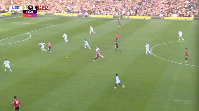 易边再战,利兹联首先打破了僵局。第62分钟,最近备受好评的曼联年轻中卫埃登·海文防守出错,布伦登·阿伦森抢占身位优势,面对塞纳·拉门斯低射入网,利兹联1-0领先曼联。
