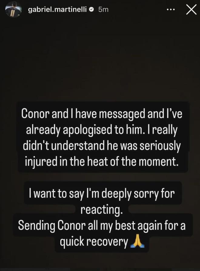 马丁内利赛后在IG上向布拉德利表达了歉意。 小马丁写道:布拉德利和我已经互通消息,我已经向他道歉。我真的不知道他严重受伤,当时正是比赛白热化的时候。我想要说我深深地为自己的冲动反应感到抱歉。再次向布拉德利送上最好的祝愿,希望他尽快康复! 小马丁应该道歉,没想到本场比赛的看点之一反倒是双方最后时刻的冲突…… 当然布拉德利的受伤并不是小马丁造成的,双方没有身体接触的情况下布拉德利落地不稳受伤,但之后小马丁的反应确实不符合体育道德。我相信小马丁说的,他不知道布拉德利真的受伤了,他只是不想让对手浪费时间,但拿球砸人(有意无意也好)和推人去场外这些动作裁判严格的话,给牌也不过分。最重要的是,这种动作不是阿森纳的价值观,己所不欲勿施于人。 我认为小马丁的道歉是诚恳的,他也不是那种人,当时上头了而已,斯洛特也表示他相信小马丁是无心之失,更不知道布拉德利真的受伤,所以此事就翻篇吧。 下面来看其他消息。