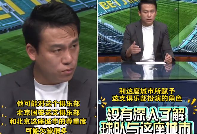 张晓彬还批评,塞蒂恩对北京国安这家俱乐部可能缺乏尊重,“他可能对北京国安这支俱乐部和北京这座城市的尊重可能欠缺很多。他没有深入去了解这支球队的历史,和这座城市所赋予这支俱乐部扮演的角色。”