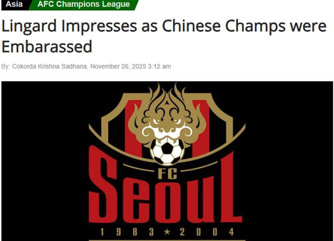这篇文章高度表扬了一传两射的林加德帮助首尔FC以3比1击败中超联赛冠军,让球队在东区前五场比赛中取得八分。紧接着,文章写道:上海海港则积1分排名东亚区的小组垫底。中超三连冠的四冠王排名倒数第一,你说尴尬不尴尬?正好对了文章标题。 |