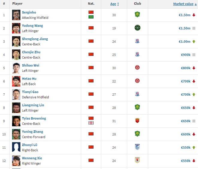 中超球员身价更新!米特里策400万领跑,塞鸟王钰栋本土居首